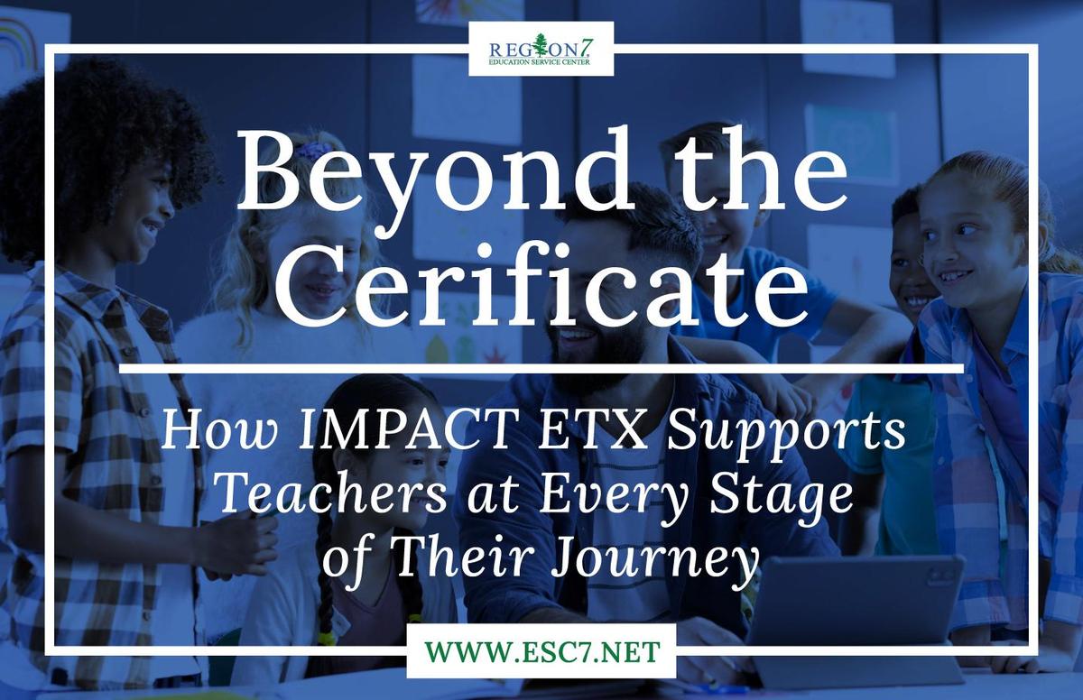That’s where IMPACT ETX comes in. What sets our program apart is our personal approach—we guide and support every candidate throughout their certification journey. We’re dedicated to ensuring Region 7 schools have the best educators: qualified, passionate teachers who are connected to a local network of peers and supported every step of the way—so you don’t just start strong, you keep growing.