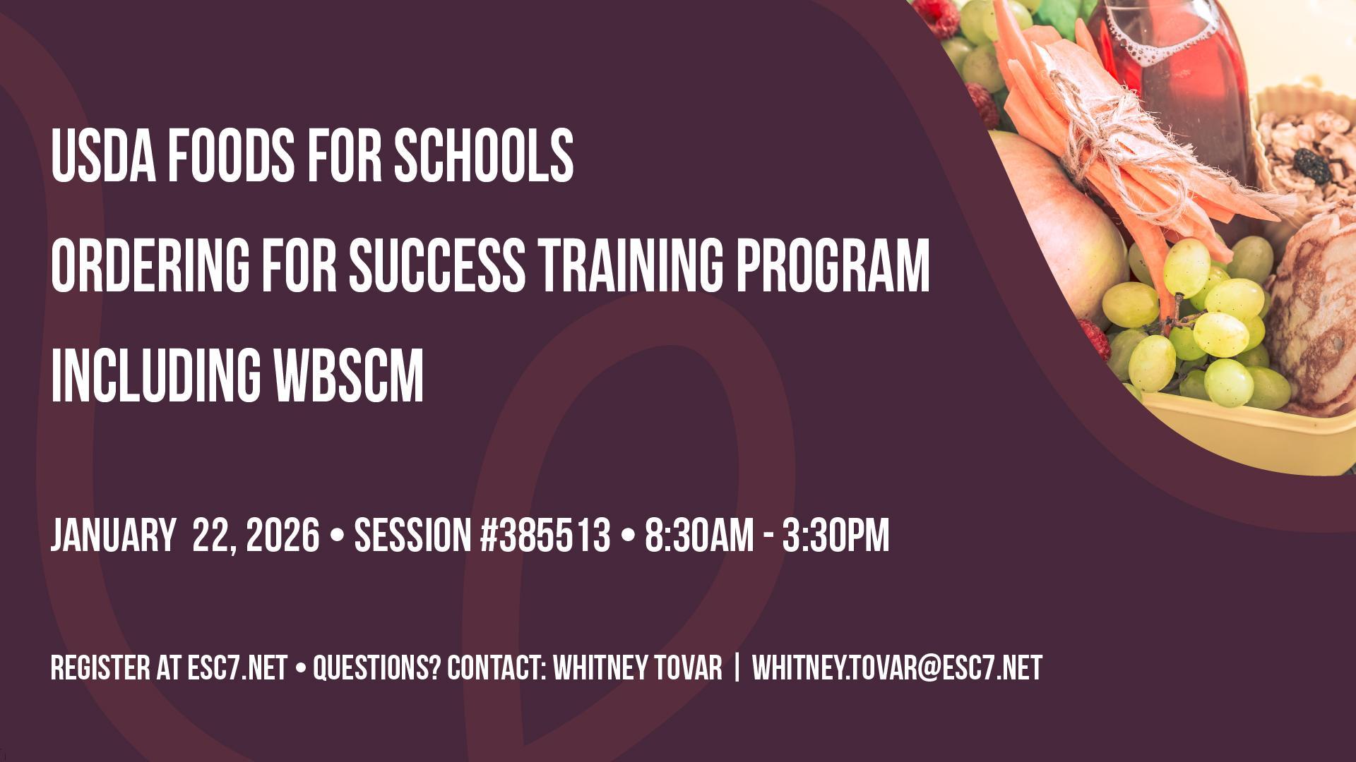 USDA Foods for Schools: Ordering for Success Training Program, including WBSCM