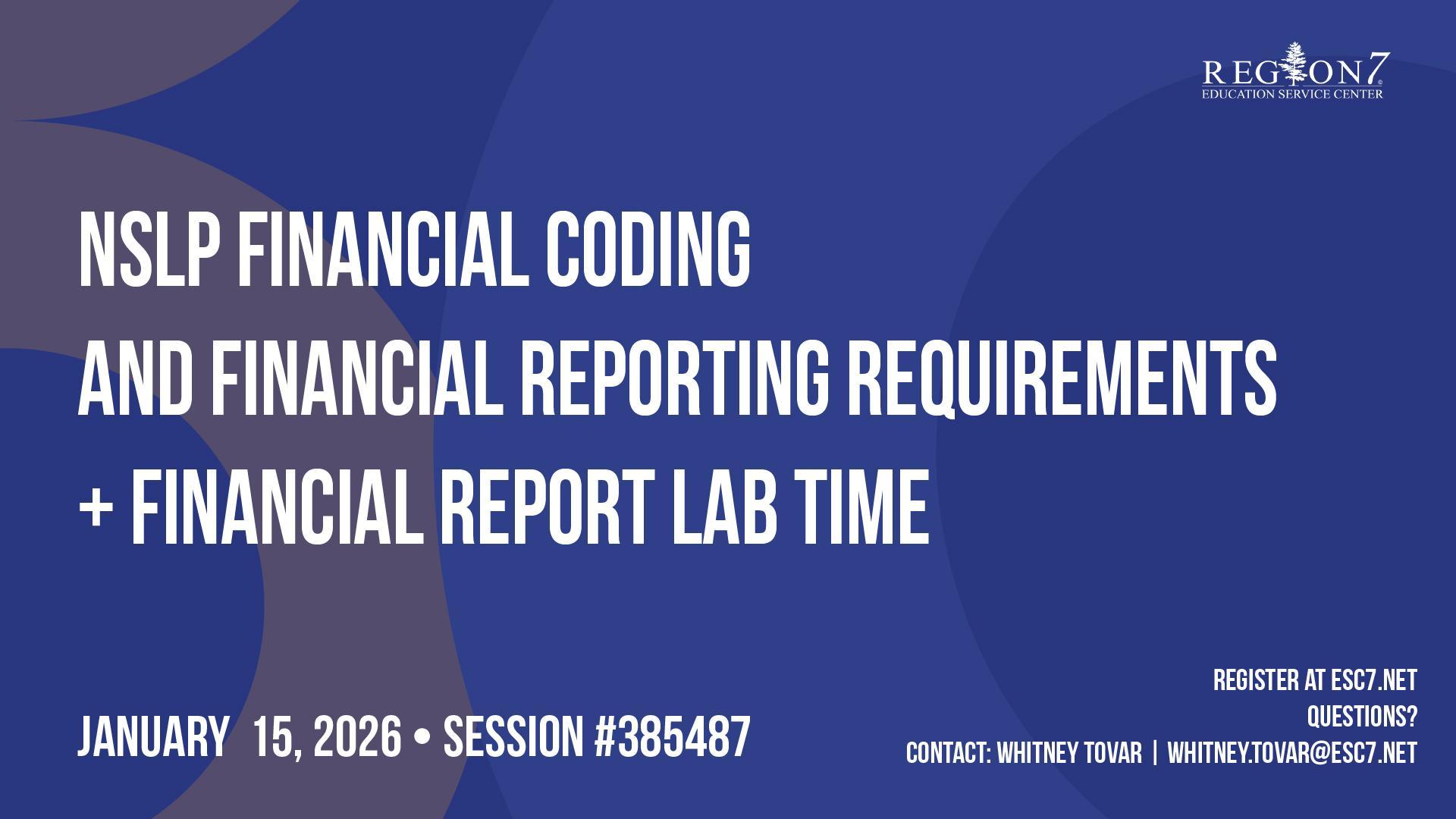 NSLP Financial Coding and Financial Reporting Requirements + Financial Report Lab Time